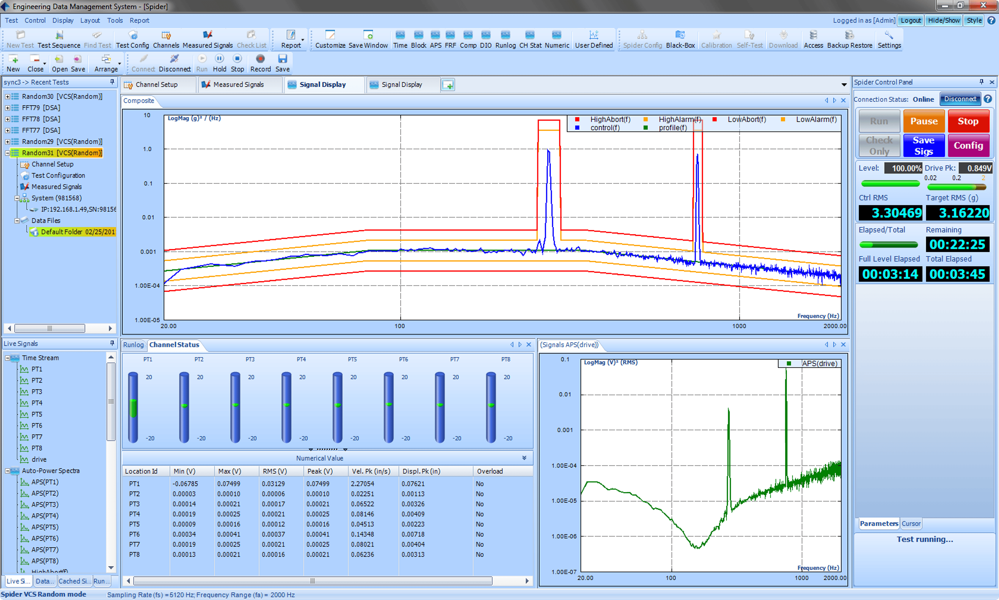 EDM software is a complete VCS (Vibration Control System). Crystal Instruments has recently released the new EDM 9.0 release, the most powerful and feature rich version of EDM software. EDM 9.0 release supports the newly introduced hardware units (Spider-80Hi, Spider-80Ci, Spider-20i, Spider-20H, Spider-20HE) that support data acquisition and recording for up to 256 kHz. In addition, the proprietary Multi-Resolution technology has been extended to benefit frequently used Vibration Control tests for Single-axis and MIMO tests. EDM has the following suite of software modules: