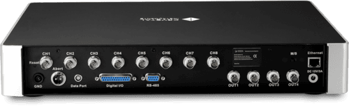 The Spider-81 not only uses Ethernet for data communication, it goes further by employing IEEE 1588v2 time-synchronized Ethernet connectivity. This technology allows (up to 100 meters in distance) remote input modules to be connected solely by Ethernet (with no dedicated “sync” cable required), while still provides sampling and triggering synchronization within an accuracy of 50 ns. The Spider-HUB industrial Ethernet switch can expand the Spider-81 controller up to 512 input channels. All input channels across the system are amplitude matched within 0.1 dB and phase matched within 1° over a 20 kHz bandwidth.