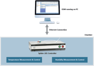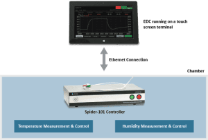 In addition, there is a wide selection of Windows tablets offered in the market that fulfill various requirements (such as the IP6X tablet). The Spider-101 controller runs on EDC software to conduct TH testing (without vibration) in independent climate chambers. Users can configure a test, operate a test, review test logs and review signals from the EDC interface.