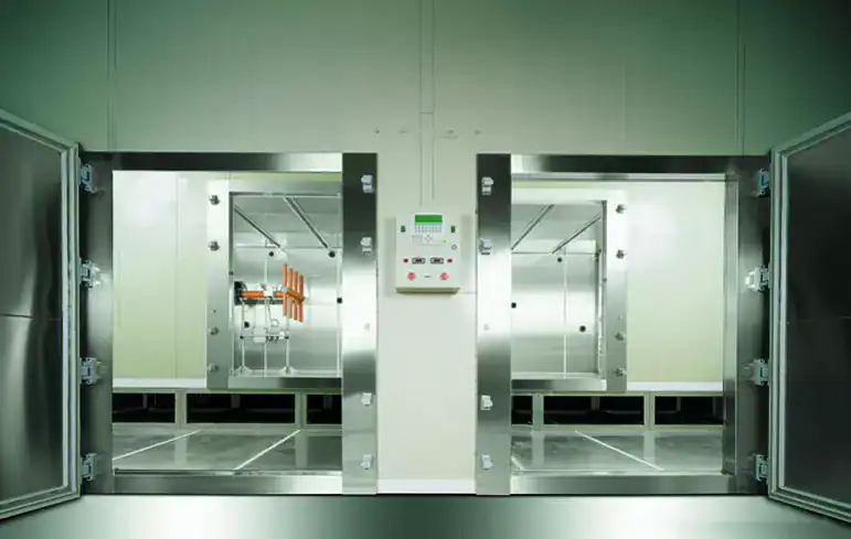 - simulate inside one chamber the outdoor environment in which the condensing unit operates;