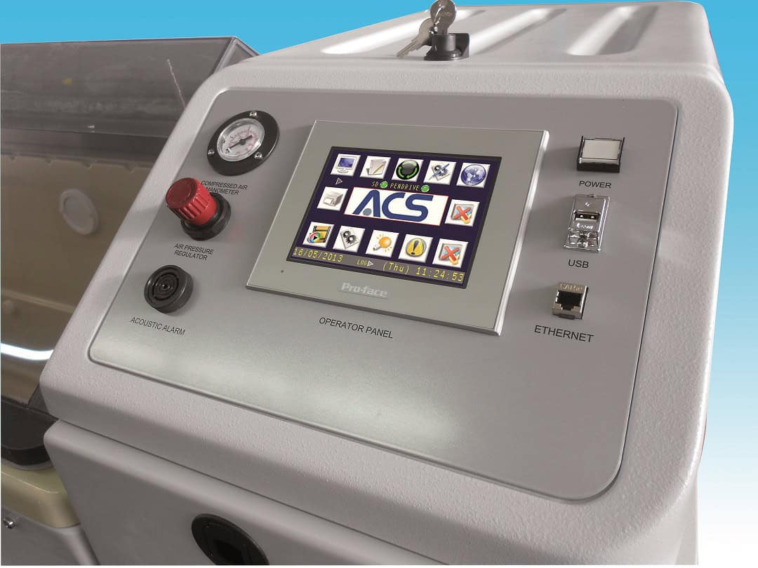 Based on a PLC structure, the system has a control panel consisting of a color touchscreen which allows the setting of all the necessary parameters for performing automatic and cyclical tests.