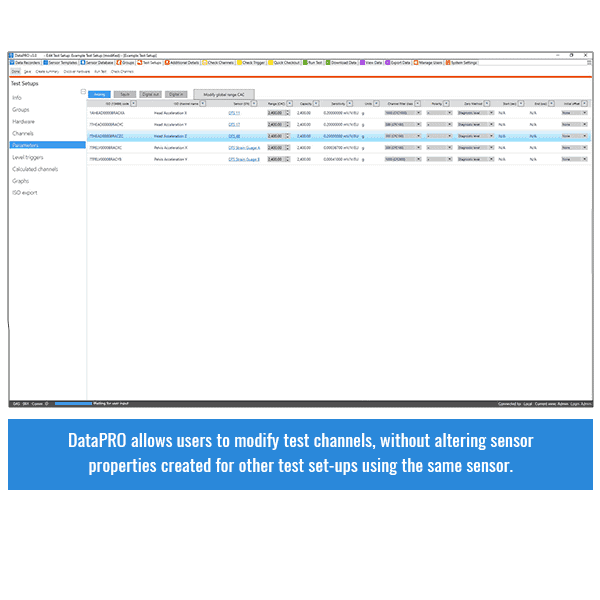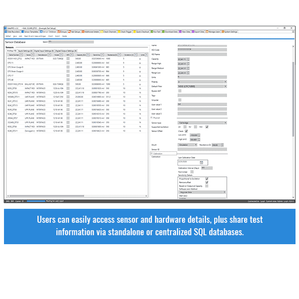 • DataPRO supports all SLICE and TDAS hardware • Customizable GUI interface for test set-up, control, viewing and data export • Standalone or centralized SQL database for shared sensor, DAS and test information; Sensor ID and real-time check-out