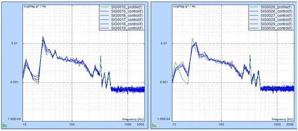 In this case, a Spider is running a Random test with a profile where there are a few peaks and valleys below 100 Hz and between 200 to 500Hz. We can see that control spectrum matches the profile very well between 200 to 500Hz, but not satisfactory below 100Hz. The reason is described in the first paragraph of this article.