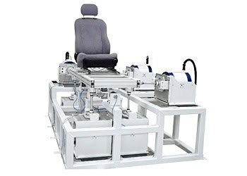 The addition of rotational motion to a three-axis system enables 6 degree-of freedom testing, as is required for vehicle seat evaluation, for example.