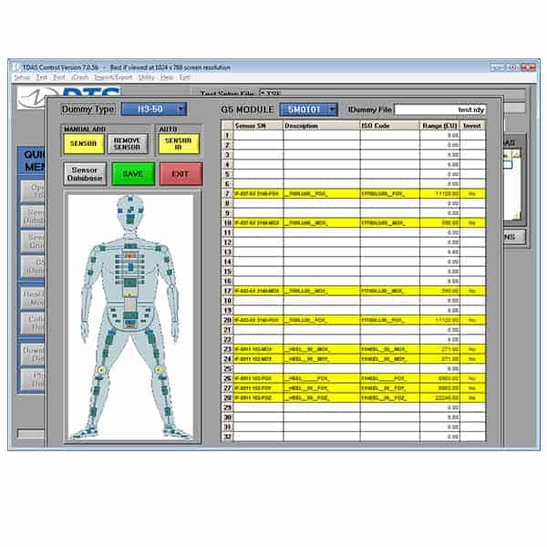 Intuitive• Easy to use GUI interface for test-set-up, control, viewing and data export • Simple XML sensor database with local access • Sensor ID and real-time check-out • Processing options for SAE-class post-filters, integrals, resultants, HIC and more High Performance• Supports squib fire for airbag and pretensioner testing • Real-time data display • Advanced self-diagnostics Compatible• Supports TDAS G5 and legacy TDAS PRO & TDAS PRO LAB hardware • Comprehensive viewing modes, filters and multiple export options including CSV, TSV, Diadem and Excel • Windows 7/8/10 (32- and 64-bit) compatible on PC Configuration