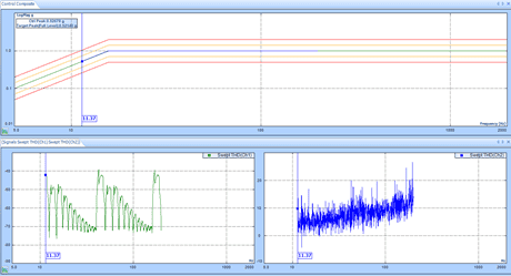 The Total Harmonic Distortion (THD) of a signal is a measurement of the harmonic distortion present and is defined as the ratio of the sum of the powers of all harmonic components to the power of the fundamental frequency. In an EDM sweep sine test, the sweep THD can be enabled by checking the option under Advanced Settings under Test Parameter tab.